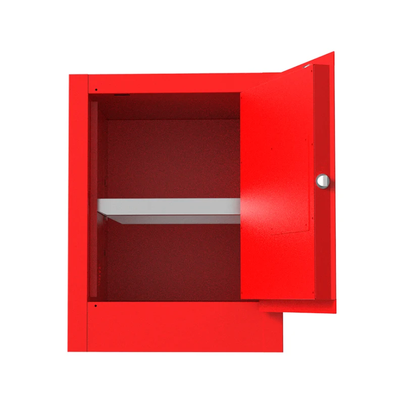 दहनशील रासायनिक सुरक्षा भण्डारण क्याबिनेट डबल-लेयर स्टिल प्लेट संरचनाको साथ निर्माण गरिएको छ, जसले क्याबिनेट शरीरको बल र स्थिरतालाई धेरै बढाउँछ। औद्योगिक उत्पादनमा, बारम्बार ह्यान्डलिंग र टक्करहरूको सामना गर्दा, यसले भित्र भण्डारण गरिएका ज्वलनशील रसायनहरूको लागि भरपर्दो भौतिक सुरक्षा प्रदान गर्न सक्छ, क्याबिनेट क्षतिको कारण ज्वलनशील वस्तुहरूको चुहावटबाट हुने सम्भावित खतराहरूलाई रोक्न सक्छ। यो रासायनिक कच्चा माल गोदामहरू जस्तै ठाउँहरूको लागि उपयुक्त छ।
